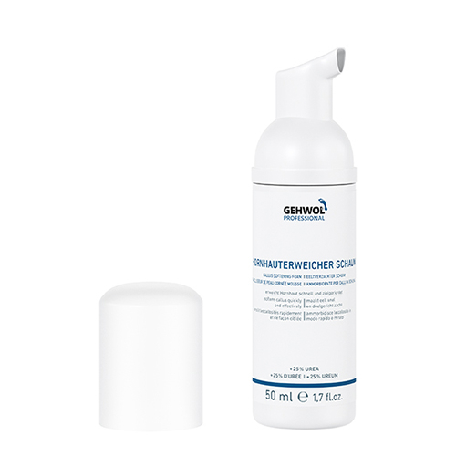 This liquid product converts to a foam when it is dispensed from the bottle. The fine-pored foam contains highly concentrated urea and lactic acid and can be precisely applied for rapid softening of hard skin.