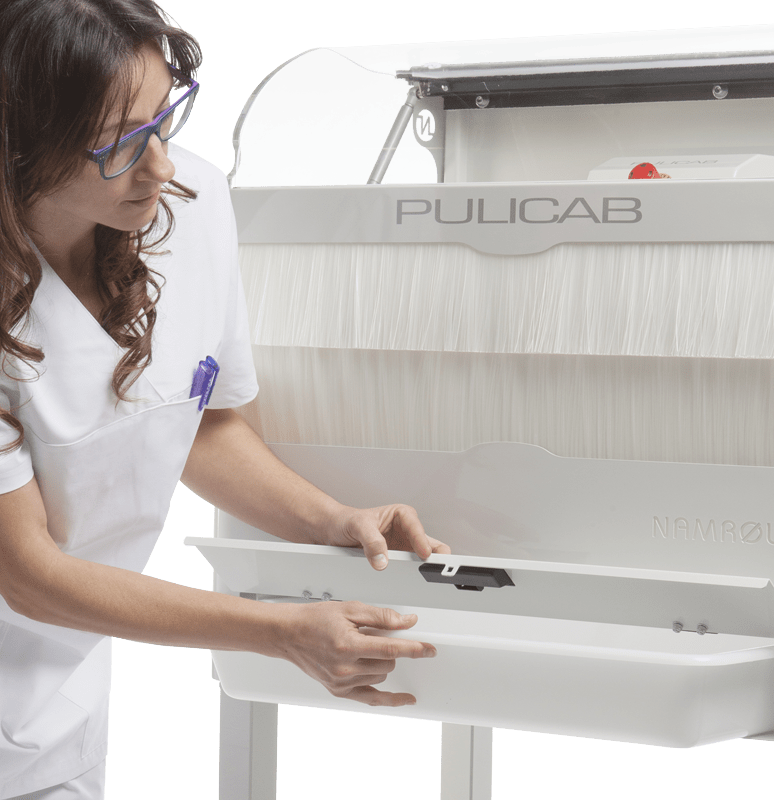 The frontal system with upper and lower brushes allows a better movement during the polishing phase and a better entry and exit of the hands to the work area.