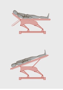 A two-section table allowing different patient positions. Due to its sturdy base and 200 kg weight capacity, it is perfectly stable.